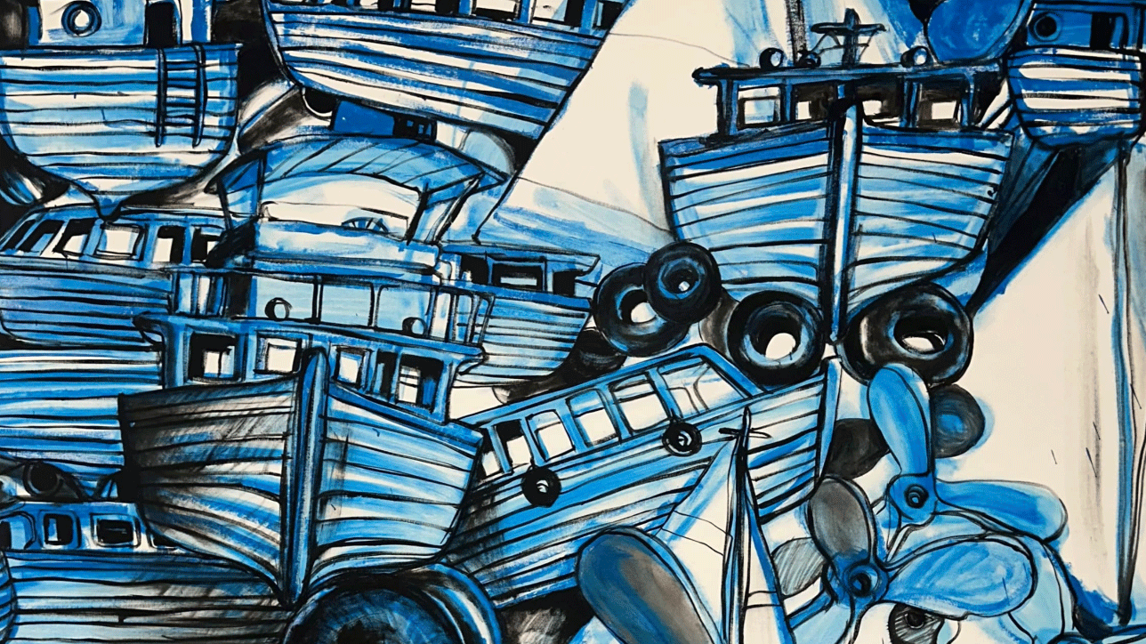 The sea is a recurring element in the work of KCHO. As a man from an island, he has explored the theme of the sea in many of his pieces, using this natural element as a powerful symbol. The sea can represent different meanings in his work, such as the idea of the island as a territory surrounded by water, the connection with nature and the marine environment, as well as the notion of freedom and the possibility of exploration and escape that the sea can symbolize. In his installations and sculptures, KCHO has used objects related to the sea, such as boats, oars, fishing nets, or nautical elements, to create works that engage with the maritime history of Cuba and the world, allowing him to explore broader concepts of identity, history, nostalgia, and above all, migration, a theme on which he has focused.